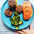 * Bolinhos de falafel com limão e ervas aromáticas (no forno), servidos em pão de espelta e centeio integral com biovivos e maionese vegana